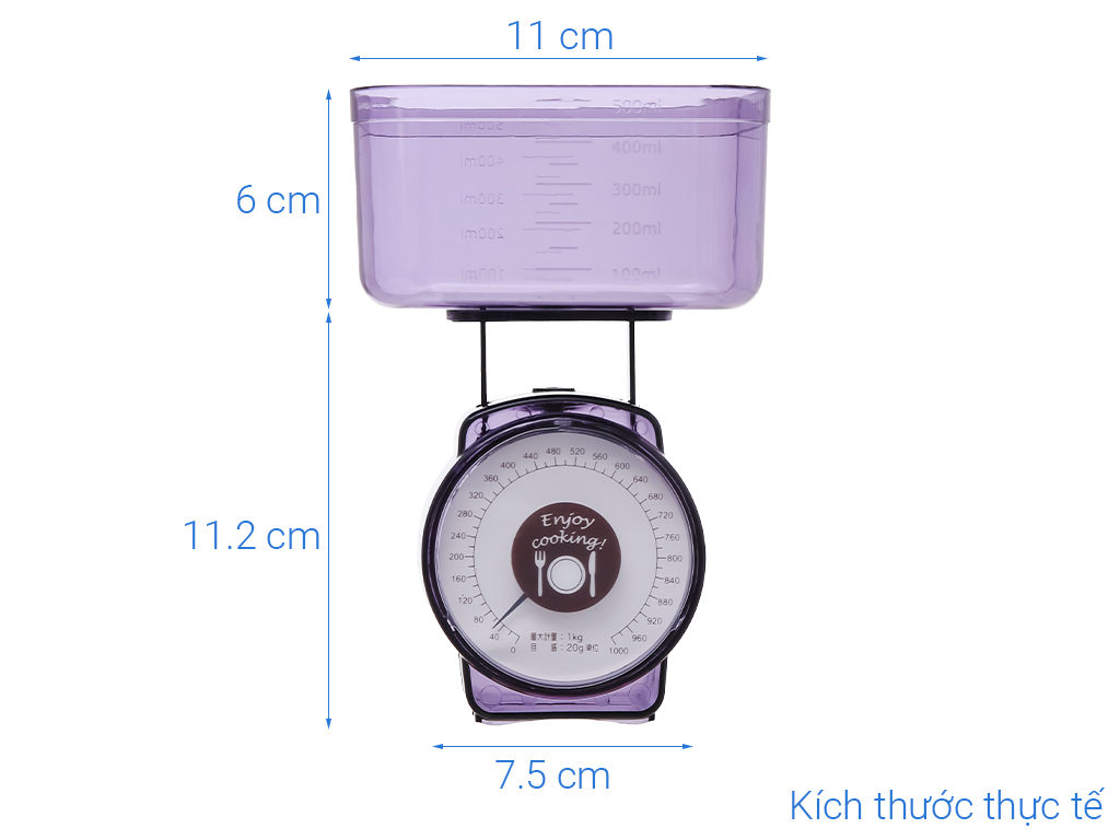 – Cân sử dụng tới trọng lượng tối đa 1kg, các vạch chia rõ ràng hơn, dễ quan sát hơn.
